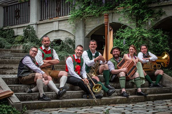 Sechs junge Musikanten und die Vroni mit der Harfe haben sich 2012 in Wals/ Salzburg zusammengefunden. Sie kommen aus Südtirol, Tirol, Oberösterreich, Kärnten und Bayern. Sie spielen traditionelle und auch „selbergstrickte“ Stückl mit Herzblut und größtem Können.